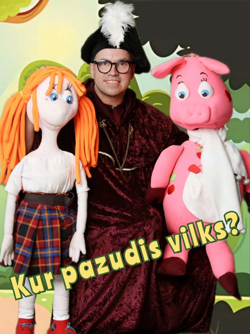 Leļļu izrāde ar sarkangalvīti un sivēnu, kur varoņi sazvanās un mēģina noskaidrot, kur palicis vilks.